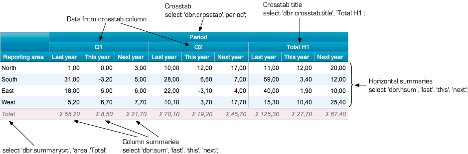 dbr.hsum - Calculates the horizontal sum in a cross-tabulation report