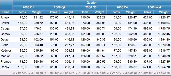 dbr.crosstab.group - Groups crosstab column values by adding another header level