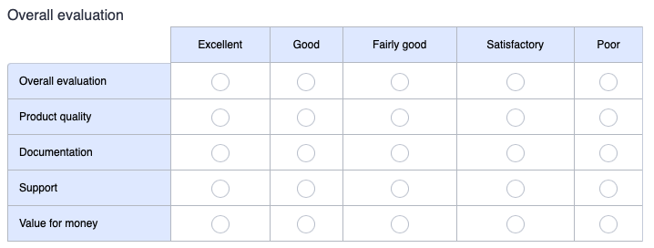 Radio buttons allow for a single choice among multiple options. In this example, the parameter name is how_long_used, which translates to the linked report parameter in_how_long_used.