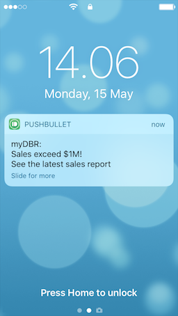 select 'John.Doe@gmail.com', 'Sales exceed $1M', 'Check the latest sales figures https://company.com/mydbr/report';